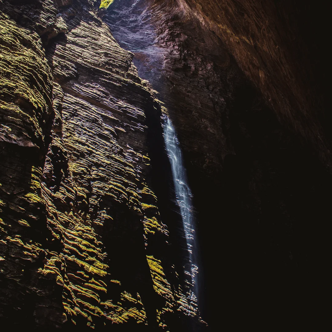 Com aproximadamente 100 metros de altura, a Cachoeira do Buracão é considerada uma das mais impressionantes de toda a Chapada Diamantina. Seu cânion estreito cria uma experiência única: o banho sob suas águas cristalinas é intenso, revigorante e cercado por uma paisagem de tirar o fôlego.